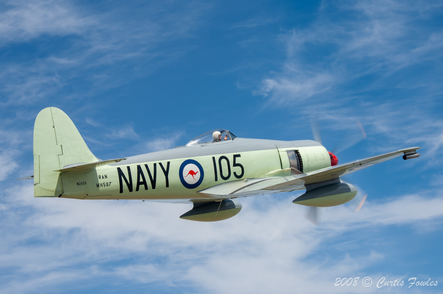 After college, Getch, enjoyed skydiving as he was working as an engineer. In 1966 he was hired by TWA as a flight engineer. He graduated to co-pilot, then captain at TWA retiring in 1995. During this time he became the man we all knew as a great pilot and owner of that Hawker Sea Fury with the giant "NAVY 105" on the side. He bought it in 1974, restored and flew it at airshows all around the western USA. Anyone who frequented those airshows knew that Sea Fury. Not many knew that Getchell would not allow anyone to work on that bird.