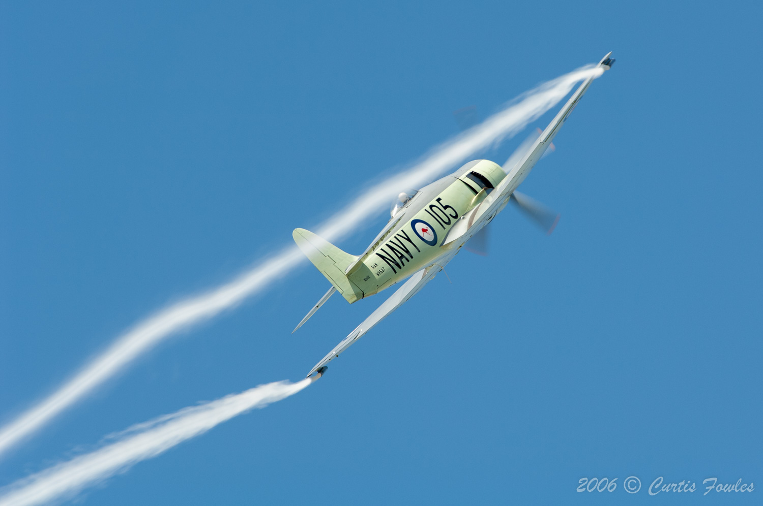 He flew with grace, precision, and beauty using the custom made smoke generators on his wingtips to perform a memorable show. He flew his Sea Fury with the Navy Legacy Flight Team on many occasions. He was also an instructor in the AT-6 and taught many pilots to learn how to fly the T-6 and then transition into the P-51 Mustang. If he was your instructor, you would know immediately when you did not push or pull on the right control at the right time. Ask anyone who was his student. They will smile and tell you many stories. He was even known for chewing out Navy F-18 pilots if they did not fly the legacy routine as practiced.