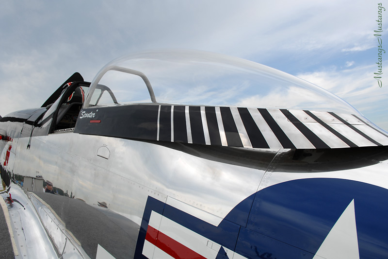 Around 1994 he began a long journey rebuilding his P-51. Having all the skills necessary, all he needed was time, money and parts. Many years later, in April 2007, Bill Yoak took his creation on its maiden flight. The P-51 he named "Quicksilver" had some very unique features. The first thing you notice is the paint work. Bill and his wife decided to create a special tribute to all veterans. They used an experimental type of sparkling paint that was difficult to use and took may attempts to get right. But, they succeeded and when the sun catches the paint, you see countless little starts that represent a veteran who fought for our freedom. Bill, who did not serve in the military, had a passion to say thanks to those that did.